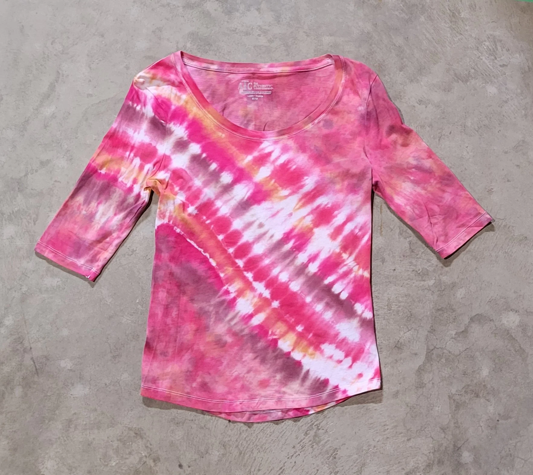 All t-shirts are pre-washed and pre-shrunk.  For lasting colour vibrancy wash T-shirts inside out with like colours using a mild detergent (no bleach) in either cold or luke-warm water.  It is natural for the tie-dye fabric colours to gently fade over time.